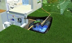 The collected Rainwater is pumped or gravity fed to a low level break tank. In turn, the water is then gravity fed to an integral or external booster pump system for onward distribution to the serviced appliances.