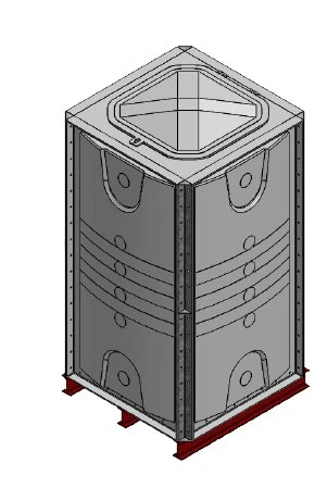 2000 Litre GRP Sectional Water Tank, a sectional tank with an internally flanged base and externally flanged sides. Modular construction utilising bolt together panels suitable for on-site assembly.