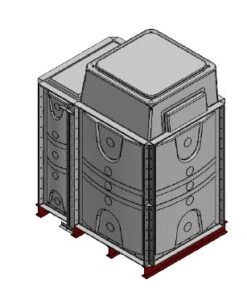2250 Litre GRP Sectional Water Tank, a sectional tank with an internally flanged base and externally flanged sides. Modular construction utilising bolt together panels suitable for on-site assembly.