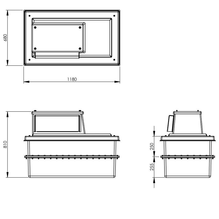– 1100 x 600 x 1050mm (1000mm clearance to underside)