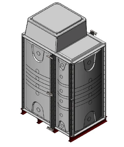 3000 Litre GRP Sectional Water Tank, a sectional tank with an internally flanged base and externally flanged sides. Modular construction utilising bolt together panels suitable for on-site assembly.