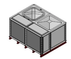 3000 Litre GRP Sectional Water Tank, a sectional tank with an internally flanged base and externally flanged sides. Modular construction utilising bolt together panels suitable for on-site assembly. Comes with man way access