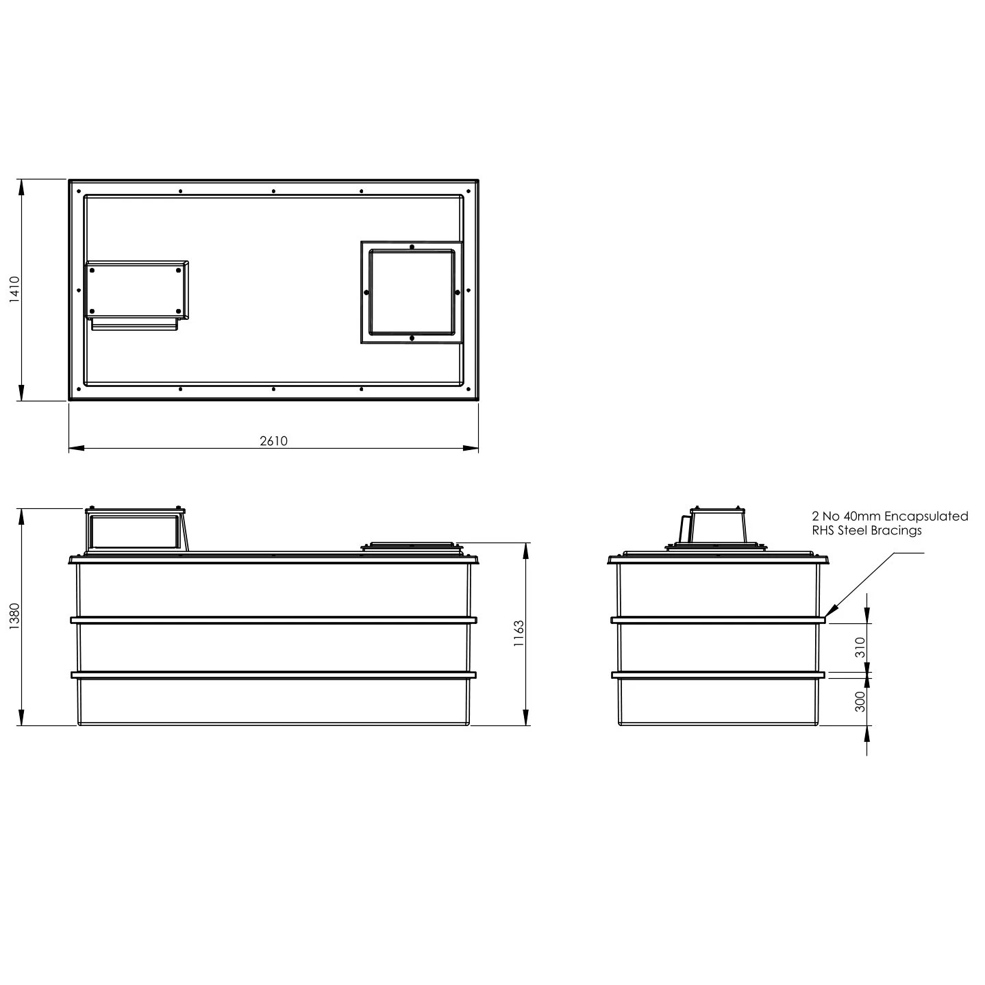 - Supplied with ply boarding to provide a flat, solid surface for the tank base