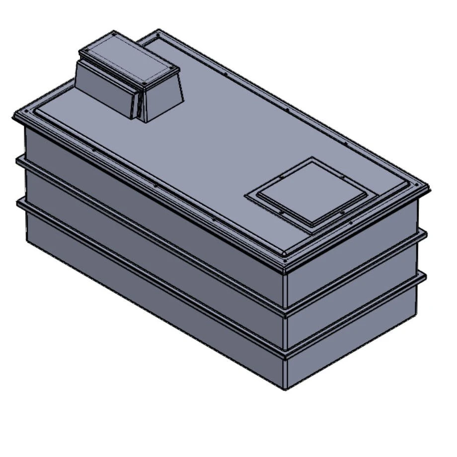 Only materials of the highest quality are used along with a highly efficient manufacturing processes. This combination ensures that these tanks are of the highest quality available. All internal surfaces, including the lid, have an Isophthalic white gel coat layer which provides a clinical smooth surface which will not support the growth of microbiological organisms. This gel coat layer is reinforced by the main GRP laminate, which provides the main structure of the tank body. The materials used are of the highest quality and applied with exacting production standards to assist in prevention of osmotic blistering. Further reinforcement is provided by square section steel tubing with fully welded corner joints. Steel reinforcement ensures that the softening and general deterioration encountered with timber supports is avoided, thus providing full structural reinforcement for the life of the tank. After the CFC free PU foam insulation and the steel reinforcement are fitted, the GRP outer skin is then applied. This ensures that both insulation and reinforcement are fully encapsulated and protected from external conditions.Â