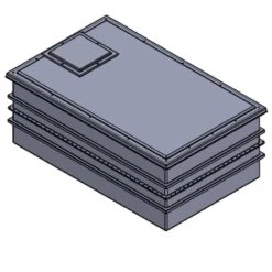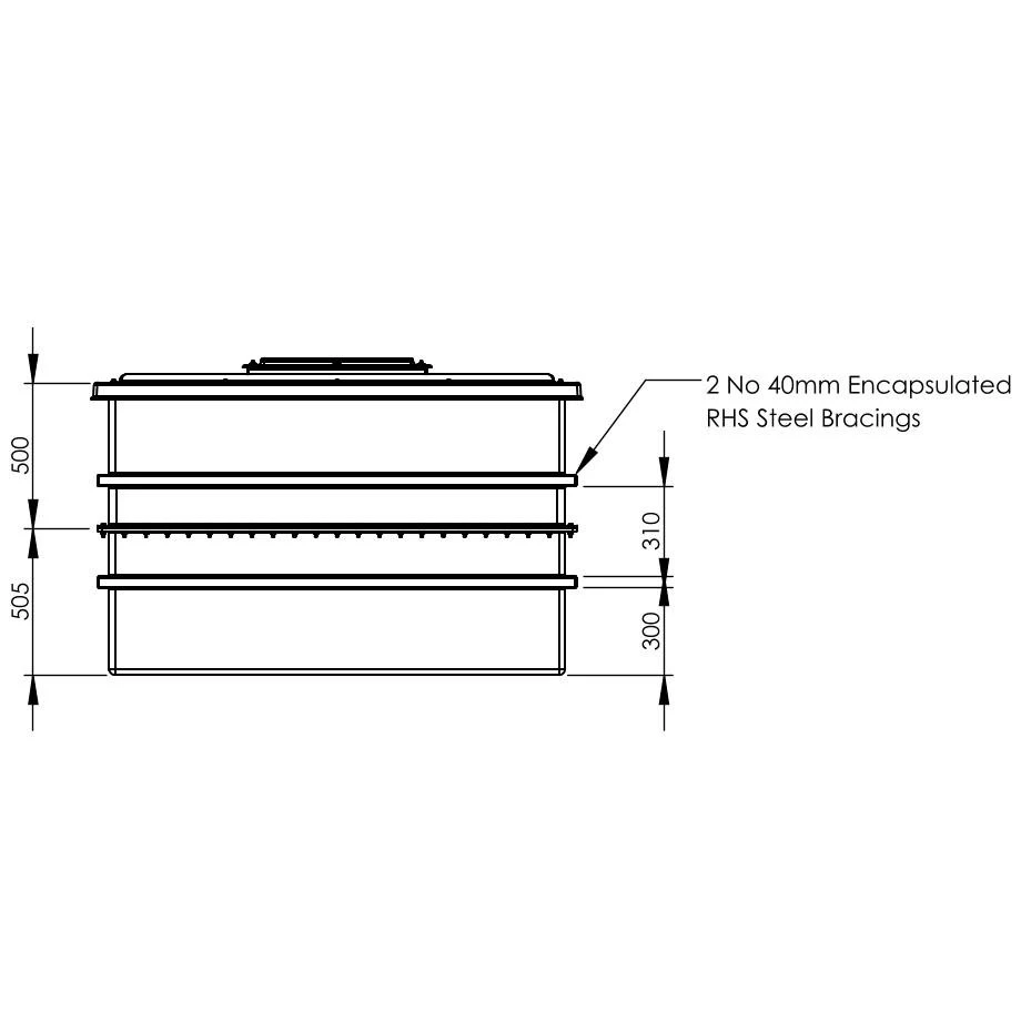 All internal surfaces, including the lid, have an Isophthalic white gel coat layer which provides a clinical smooth surface which will not support the growth of microbiological organisms. This gel coat layer is reinforced by the main GRP laminate, which provides the main structure of the tank body. The materials used are of the highest quality and applied with exacting production standards to assist in prevention of osmotic blistering. Further reinforcement is provided by square section steel tubing with fully welded corner joints. Steel reinforcement ensures that the softening and general deterioration encountered with timber supports is avoided, thus providing full structural reinforcement for the life of the tank.