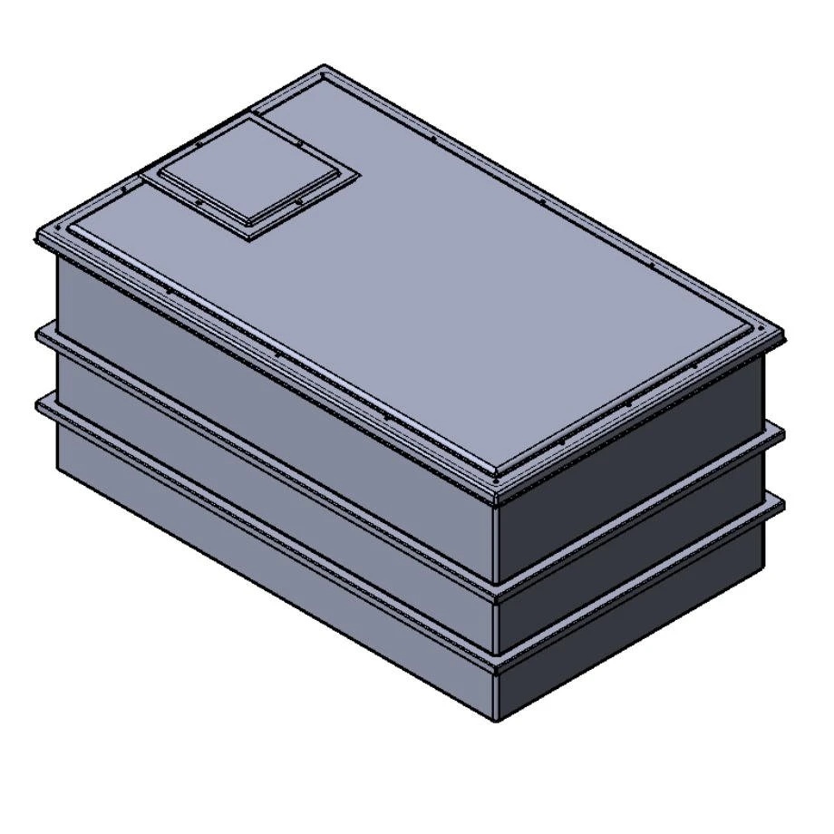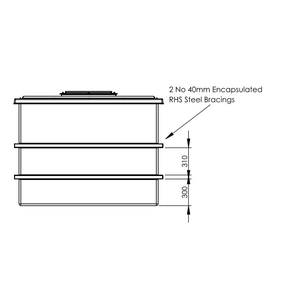 All internal surfaces, including the lid, have an Isophthalic white gel coat layer which provides a clinical smooth surface which will not support the growth of microbiological organisms. This gel coat layer is reinforced by the main GRP laminate, which provides the main structure of the tank body. The materials used are of the highest quality and applied with exacting production standards to assist in prevention of osmotic blistering. Further reinforcement is provided by square section steel tubing with fully welded corner joints. Steel reinforcement ensures that the softening and general deterioration encountered with timber supports is avoided, thus providing full structural reinforcement for the life of the tank.