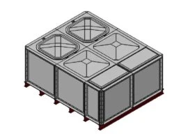 5000 Litre GRP Sectional Water Tank, a sectional tank with an internally flanged base and externally flanged sides. Modular construction utilising bolt together panels suitable for on-site assembly.