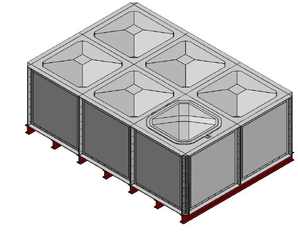 6000 Litre GRP Sectional Water Tank, a sectional tank with an internally flanged base and externally flanged sides. Modular construction utilising bolt together panels suitable for on-site assembly. Comes with man way access