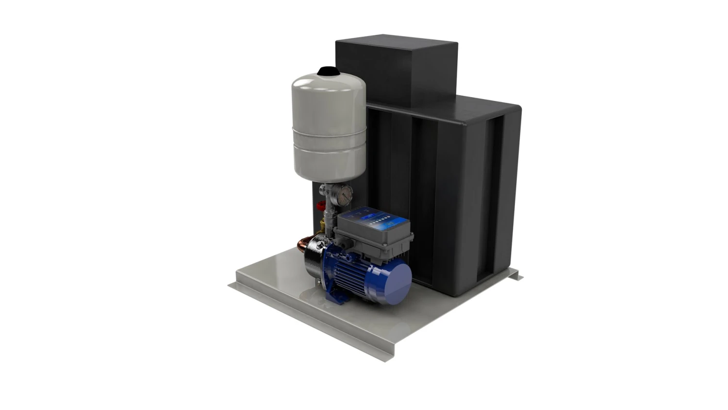 The CAT 5 booster set also know as ‘Backflow prevention booster set’ incorporates a 67 Litre polypropylene break tank complete with a raised ball valve chamber with an AB air gap to WRAS approved regulations. This free standing booster set, is ideal where space is limited, as it has a small footprint of just 650mm x 650mm. The system comes complete with an integrated pressure controller which is mounted directly to th top of the pump.