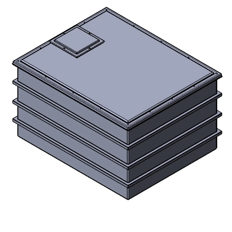 All internal surfaces, including the lid, have an Isophthalic white gel coat layer which provides a clinical smooth surface which will not support the growth of microbiological organisms. This gel coat layer is reinforced by the main GRP laminate, which provides the main structure of the tank body. The materials used are of the highest quality and applied with exacting production standards to assist in prevention of osmotic blistering. Further reinforcement is provided by square section steel tubing with fully welded corner joints. Steel reinforcement ensures that the softening and general deterioration encountered with timber supports is avoided, thus providing full structural reinforcement for the life of the tank.