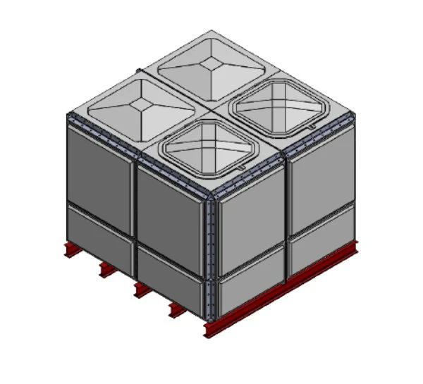 7627 Litre GRP Sectional Water Tank, a sectional tank with an internally flanged base and internally flanged sides. Modular construction utilising bolt together panels suitable for on-site assembly.