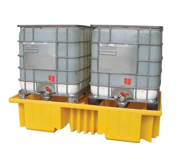 Polyethylene spill pallet for 2 x 1000L IBC’s, designed for the safe and compliant storage of IBC pallet using support columns without grate.