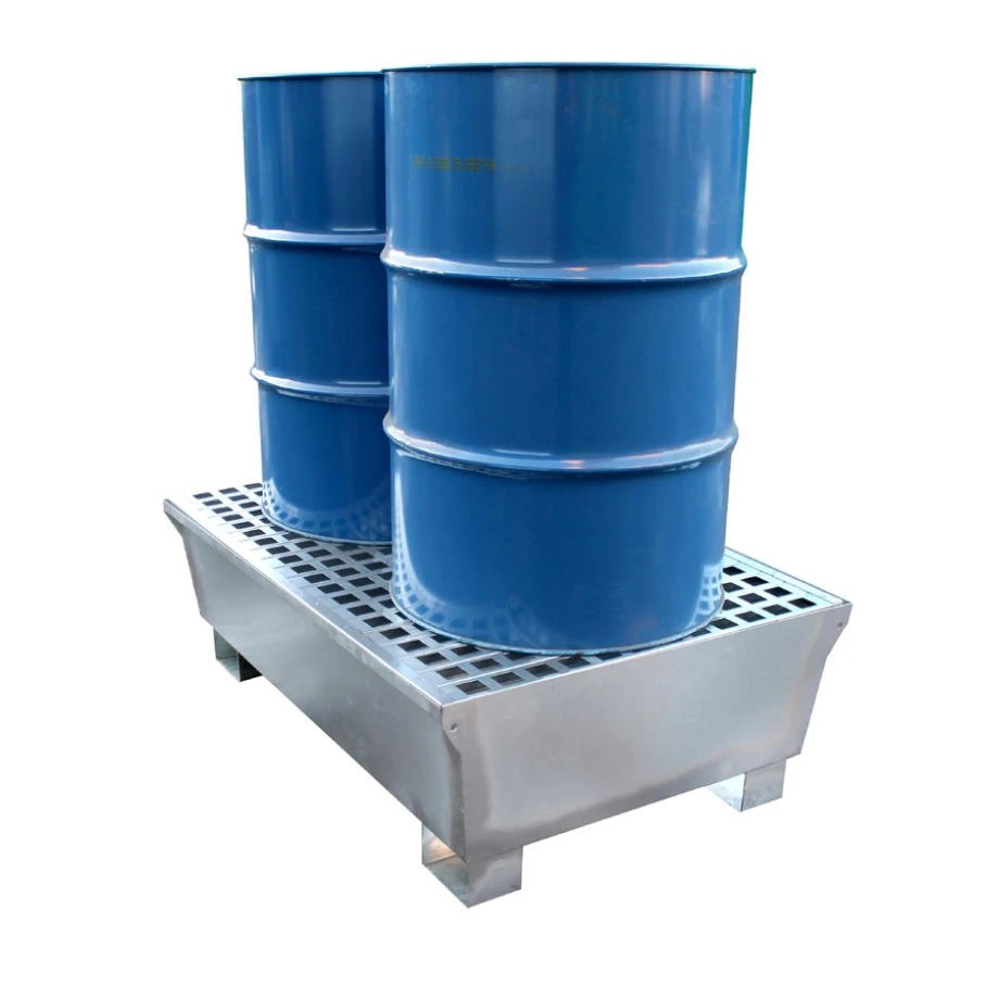 Robust steel spill pallets for use in harsh working environments or where compatibility with plastic is an issue.Â