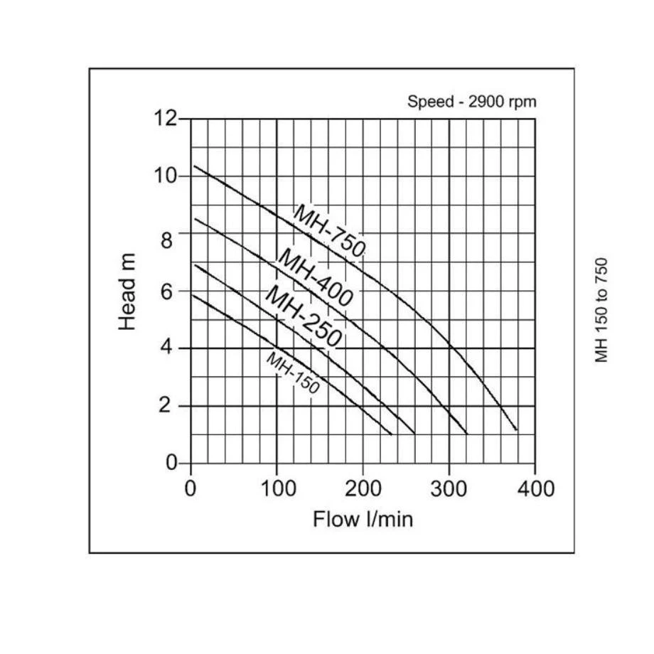 The MH series of pumps are designed for circulation in ponds, feeding waterfalls and creating water features. All models are compact, yet powerful, however, the MH-150 and MH-250 are principally suited to the pre-formed pool or small pond. The larger models are better suited to the more significant moving water project, lake or large pond. The non-clog impeller can deal easily with fish waste, vegetation, soft solids etc up to a size of 6 mm.