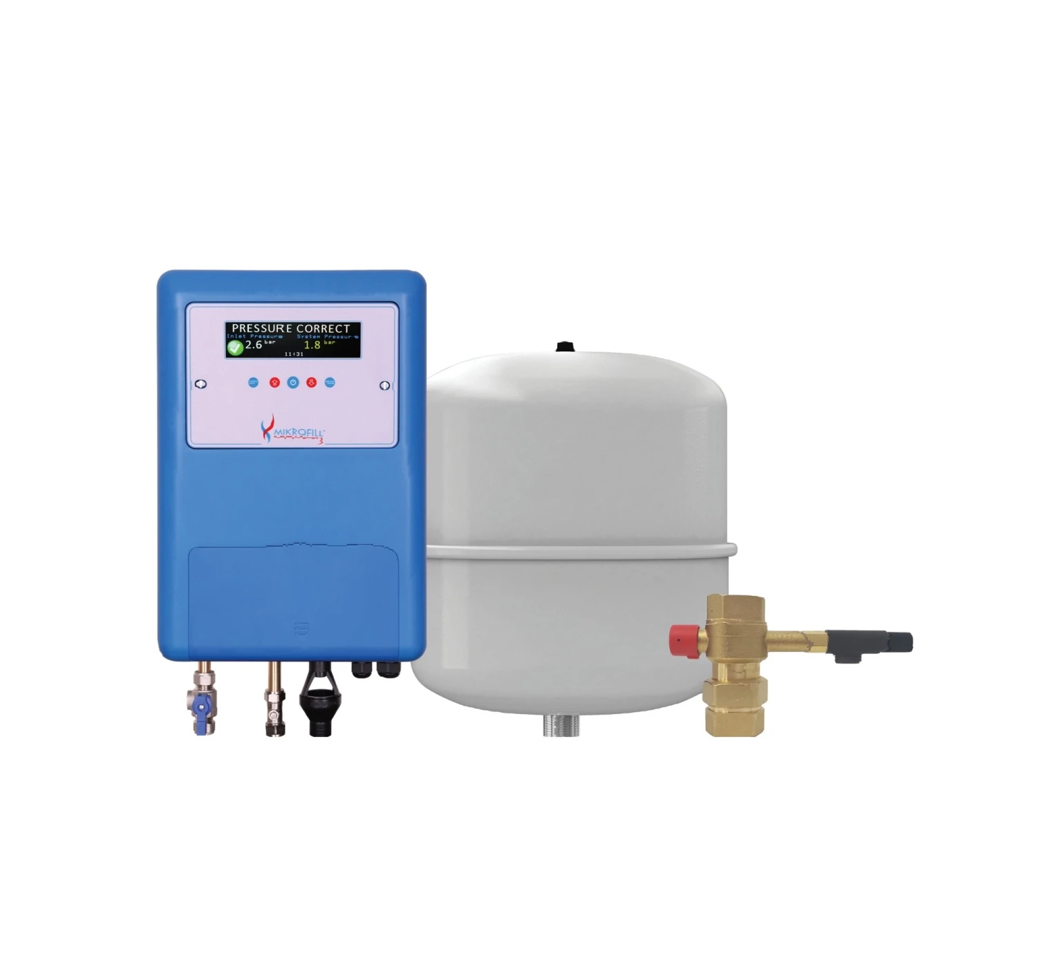Mikrofill is a system that efficiently fills a water system to an optimal pressure level to achieve the best flow. The Mikrofill is designed to be connected directly to a building’s incoming mains/boosted water supply and fill a heating or chilled water system without the use of a pump.