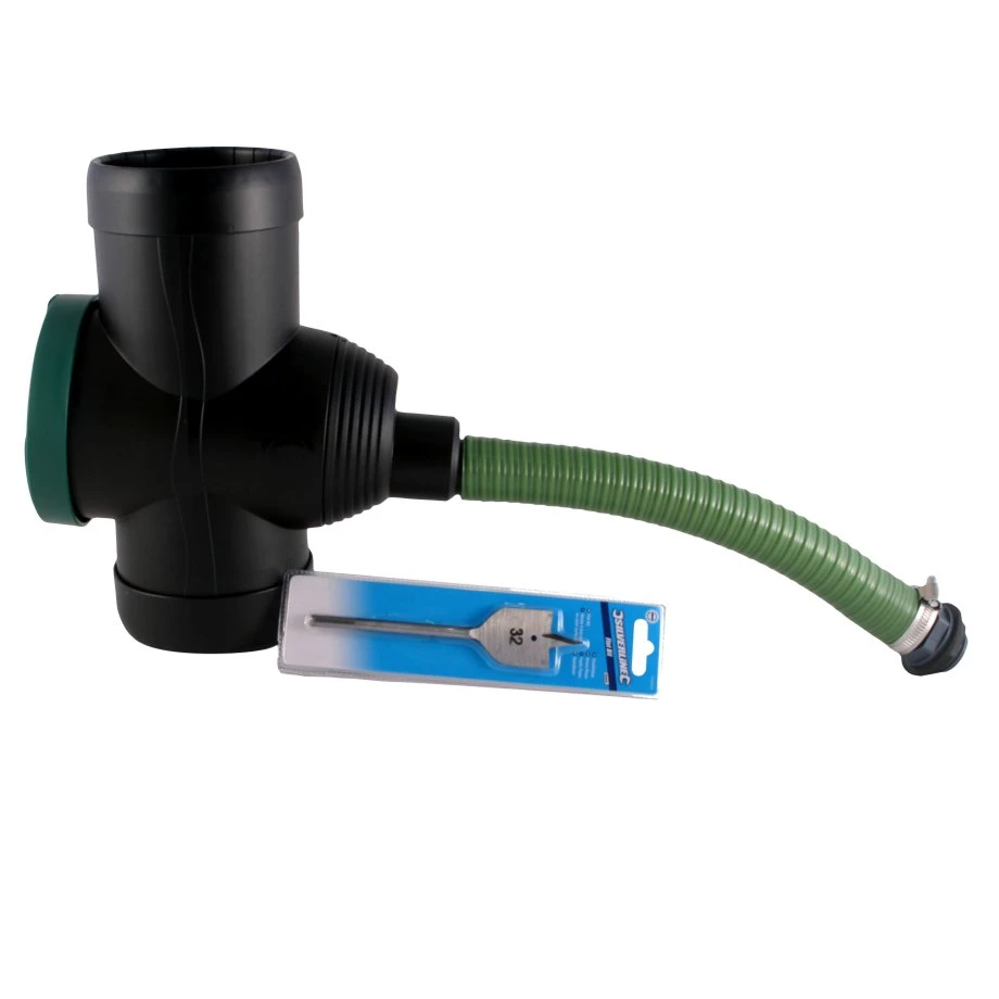 The 2 m Pump to Turret Hose connects the pump outlet of to the turret of your rainwater utility tank. A Holesaw and grommet set is included to help you position the hose through the top of the tank at a convenient place.