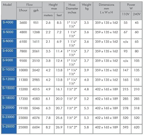 Best Pond Pumps – These S-Series Pond pumps can be used for pond aeration, water features and filter systems. They are capable of pumping solids up to 6mm. A high-quality aluminium and ceramic shaft ensure long life even in continuous duty.